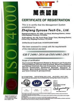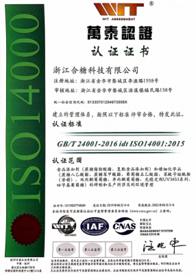 公司被評為“國家高新技術企業”,并有多個產品獲得“國內發明專利”,通過了FSSC22000食品安全體系認證,ISO14001環境管理體系,MUI HALAL認證,SKS KOSHER認證,ISO9001質量管理體系和ISO22000食品安全管理體系認證,并有多個產品通過了“歐洲REACH法規”注冊和“韓國REACH法規” 預注冊。